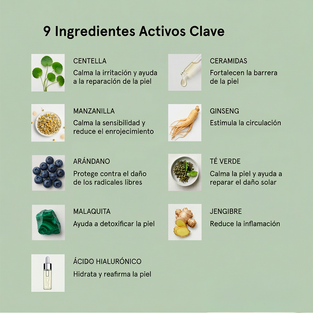 Limpia profundamente, elimina grasa y suciedad acumulada, y ayuda a calmar la piel sin resecarla.